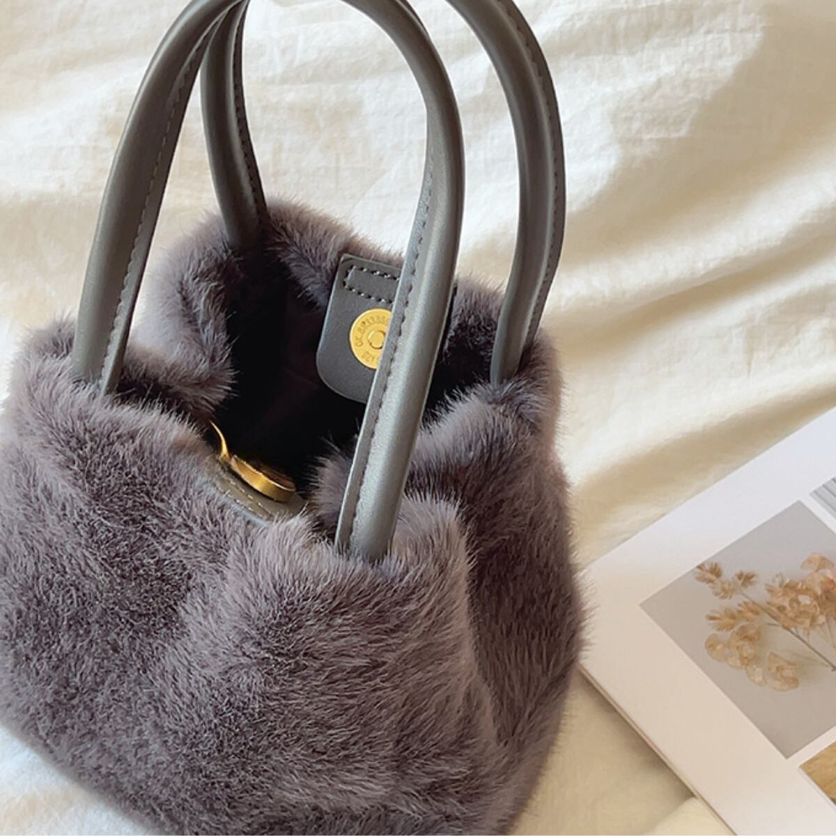 マグネットボタン付きで、荷物の出し入れもスムーズ。持つだけで季節感あふれるコーディネートが完成し、秋冬のスタイルに温かみとトレンド感を添えてくれます。
