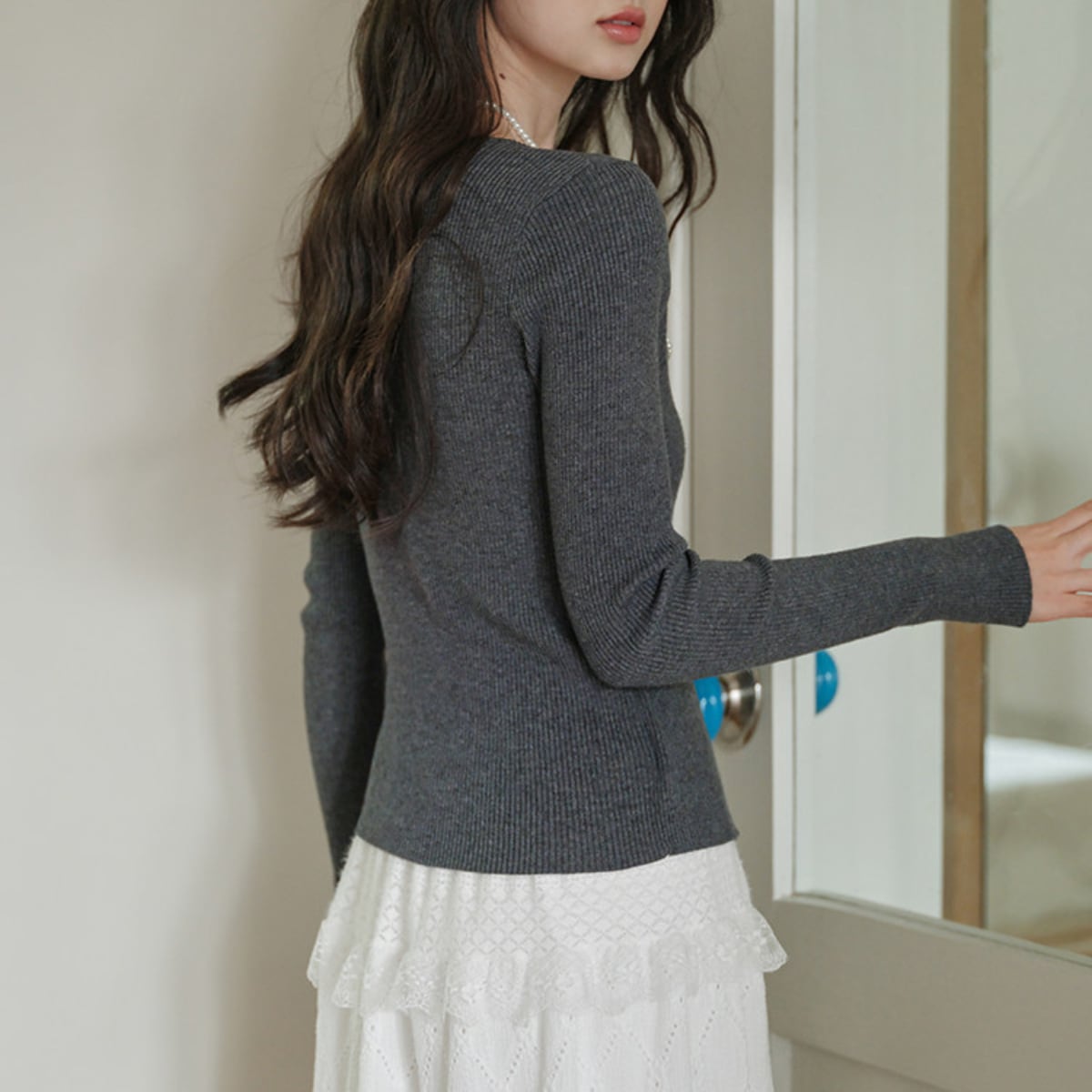 カジュアルなデニムから、画像のモデルのようにエレガントなフレアスカートまで、合わせるボトムスを選ばず、オン・オフ問わず活躍する一枚です。