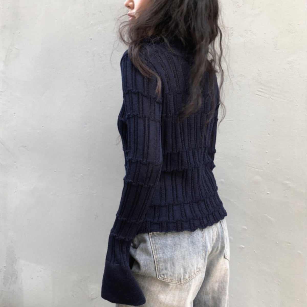 また、袖口はほんのり広がるベルスリーブになっており、手元までフェミニンに彩ります。