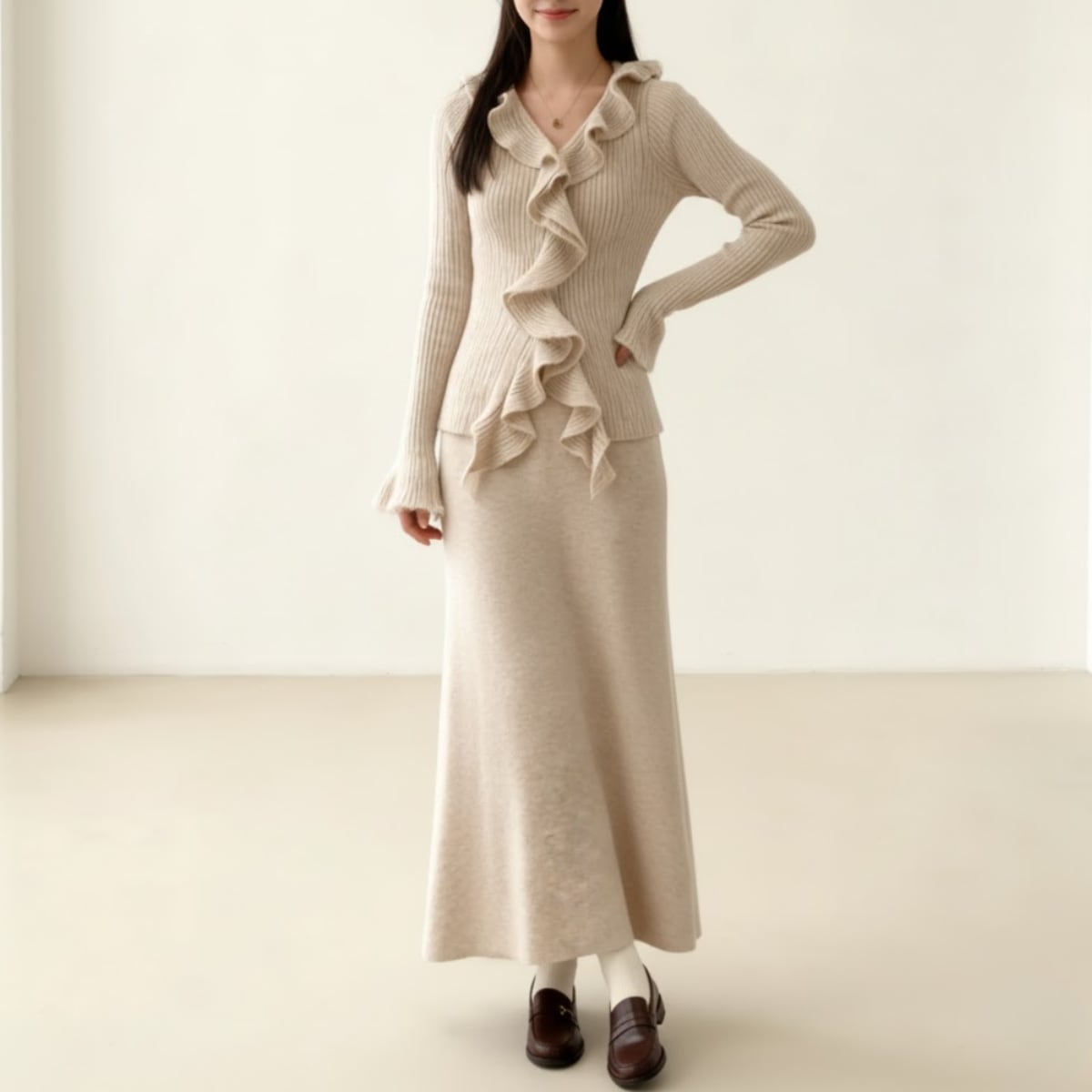 <セットアップ>Ruffle Knit Top and Long Skirt Set ch0231