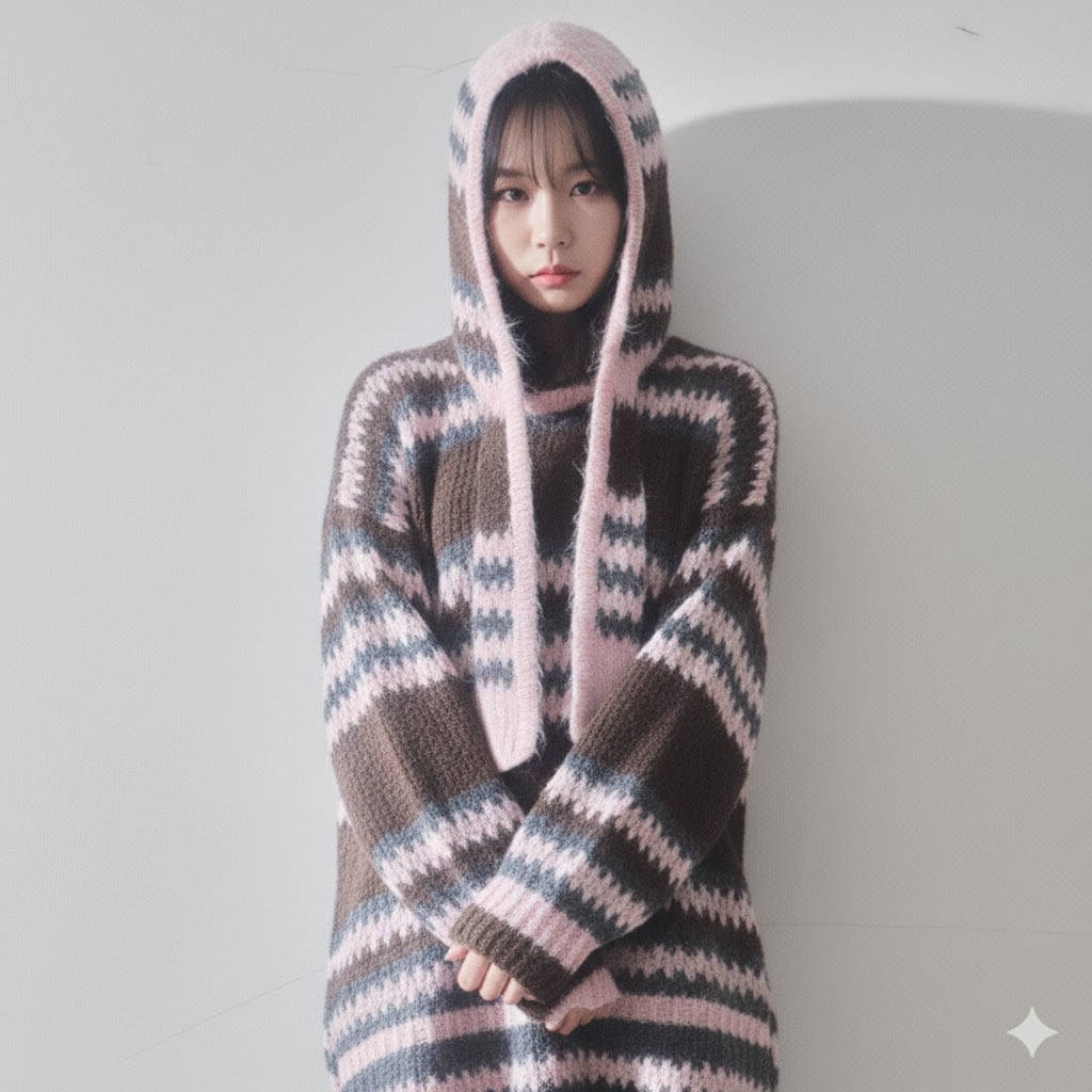 リラックスフィットのセーターと、折り返しデザインのニット帽をセットアップとして着用することで、統一感のあるトレンディなコーディネートが簡単に完成し、デイリーカジュアルはもちろん、週末のお出かけやカフェでのリラックスタイムなど、幅広いシーンでおしゃれに着こなしていただけます。