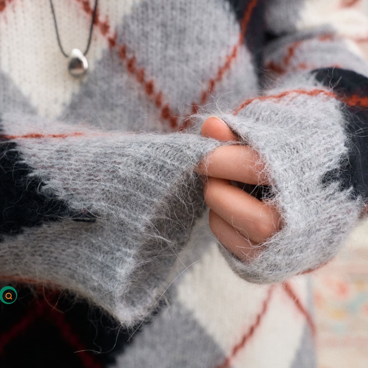 クラシカルなアーガイル柄を現代風にアップデートしたニットプルオーバー。