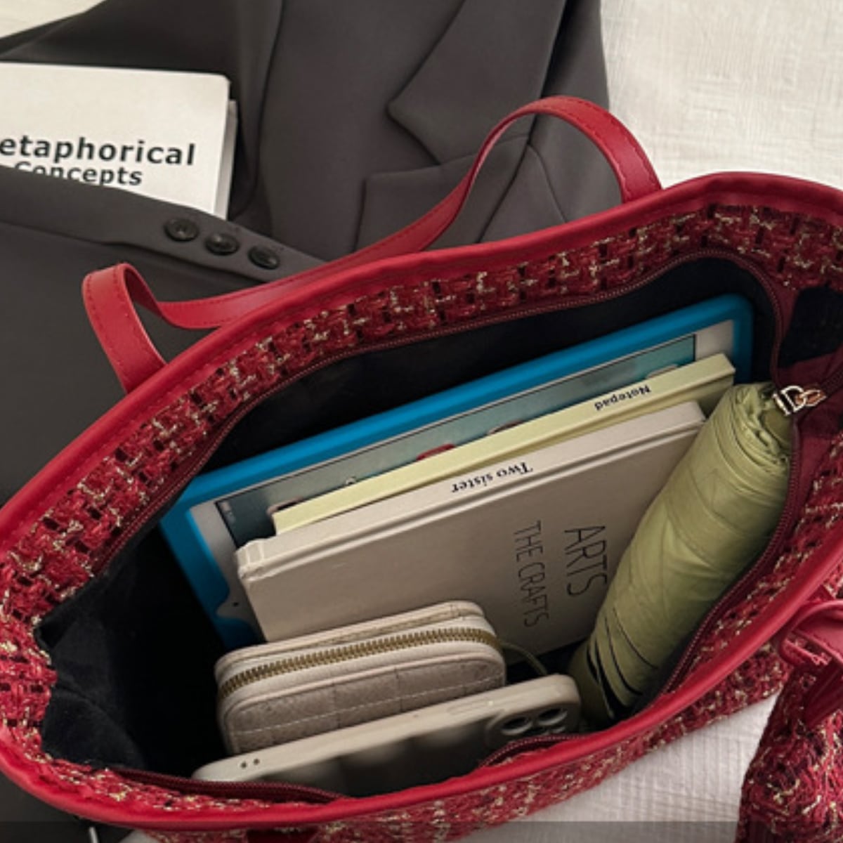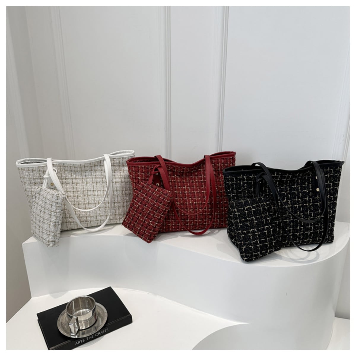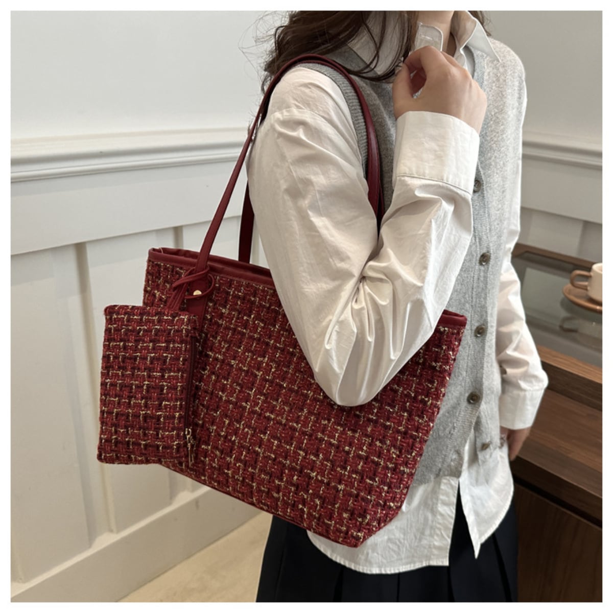 ツイード素材が魅力的なトートバッグとポーチのセットです。日常使いから通勤・通学まで、あらゆるシーンで活躍します。