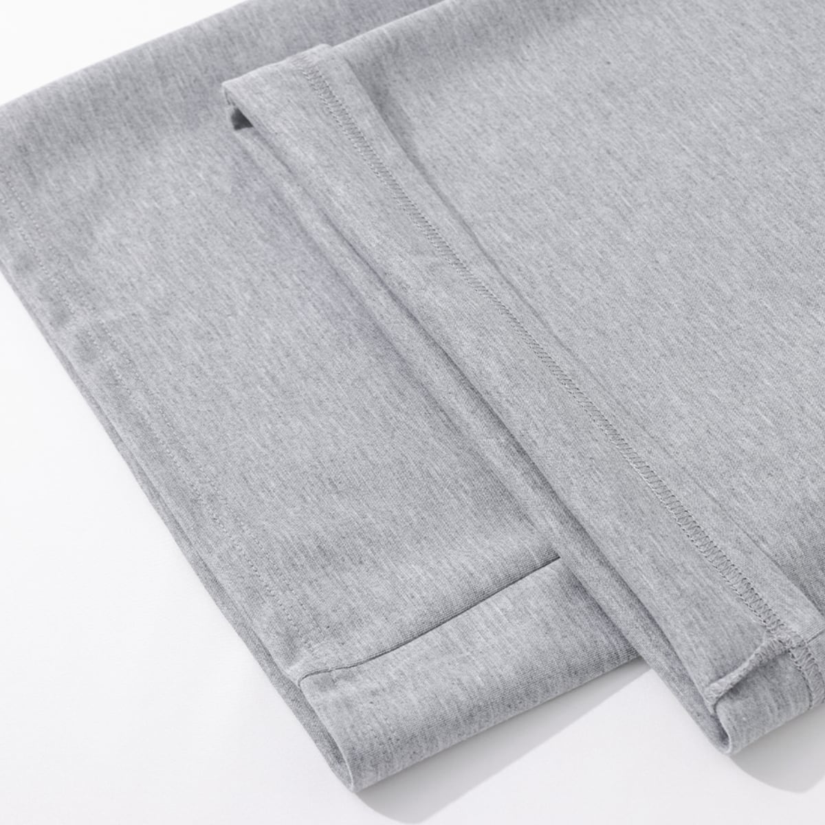 上下を同じニュアンスのグレーで統一しているため、スウェット素材でもだらしなく見えず、都会的で洗練された印象に。