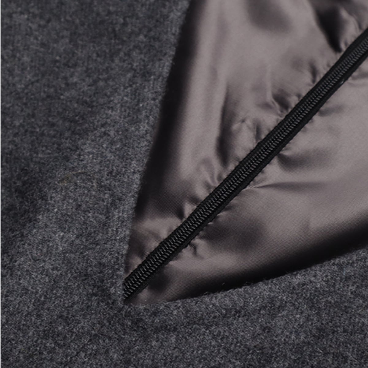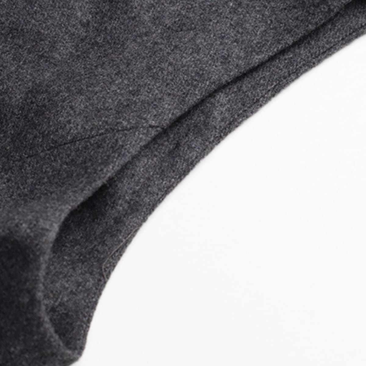 クラシカルなテーラードの要素を取り入れた、洗練された大人のためのワンピースです。深みのあるチャコールグレーのウールブレンド素材は、暖かさと上質な風合いを両立させ、秋冬の装いに格調高さを添えます。