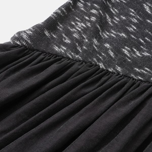 トップス部分は、白と黒の糸が織りなすメランジ柄のニット素材を使用しており、表情豊かなテクスチャーがシンプルながらも深みのある印象を与えます。