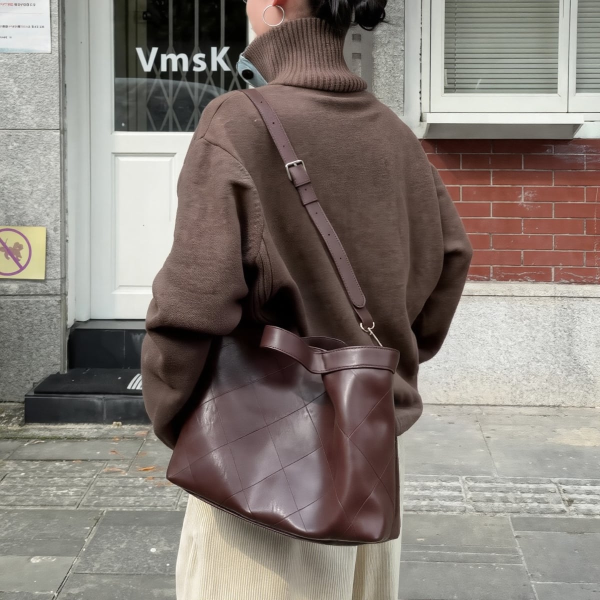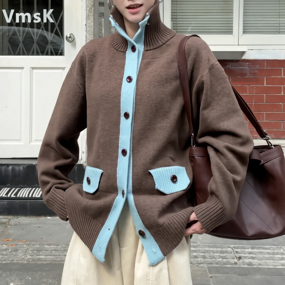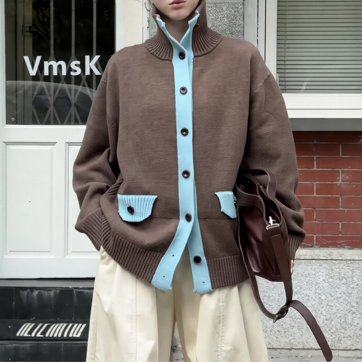 ベースとなるのは、深みのあるエスプレッソブラウン。ボタンの開閉によって、タートルネックのような知的な表情から、襟を寝かせたリラックスしたスタイルまで、その日の気分に合わせた着こなしが楽しめます。