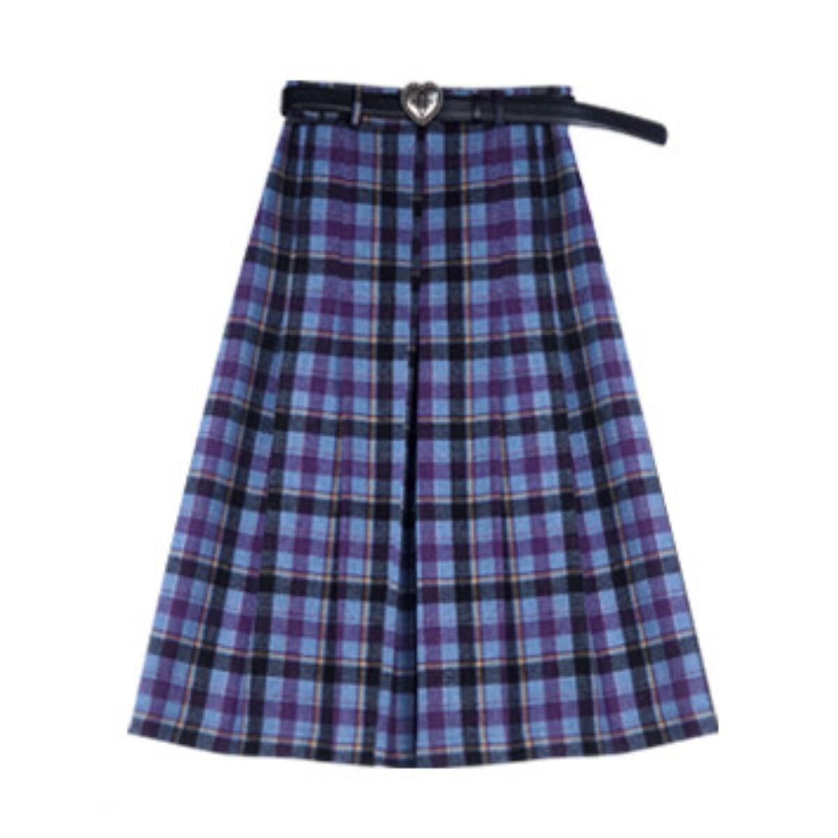 Mystic Plaid Pleated Midi Skirt ch0405