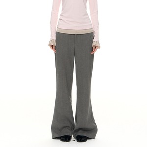 ウエストラインにアシンメトリーなアクセントを加えることで、通常のパンツスタイルにはない立体感を演出します。