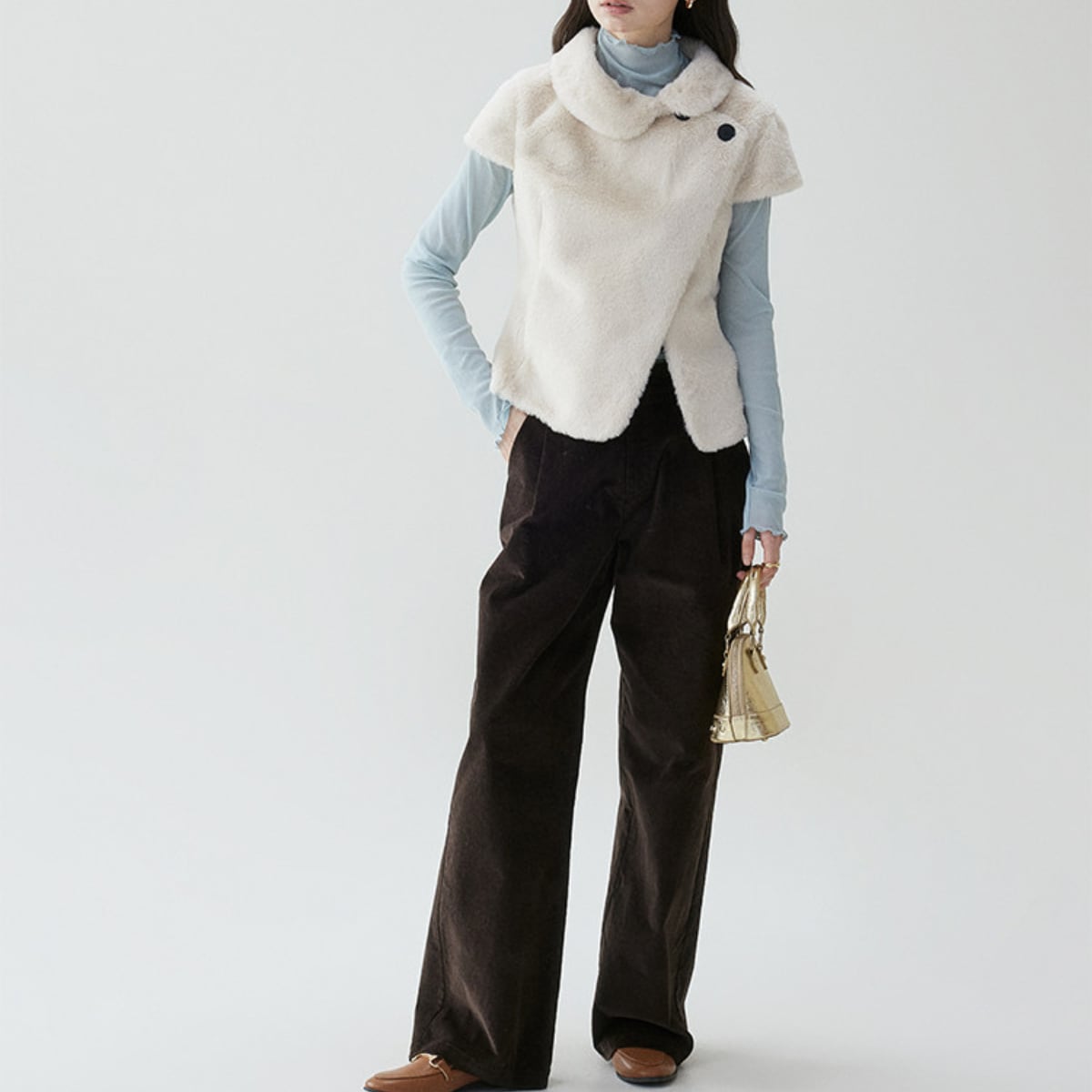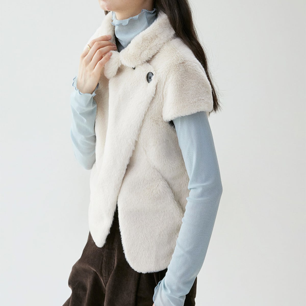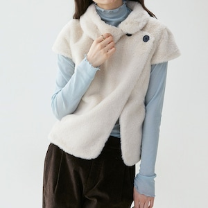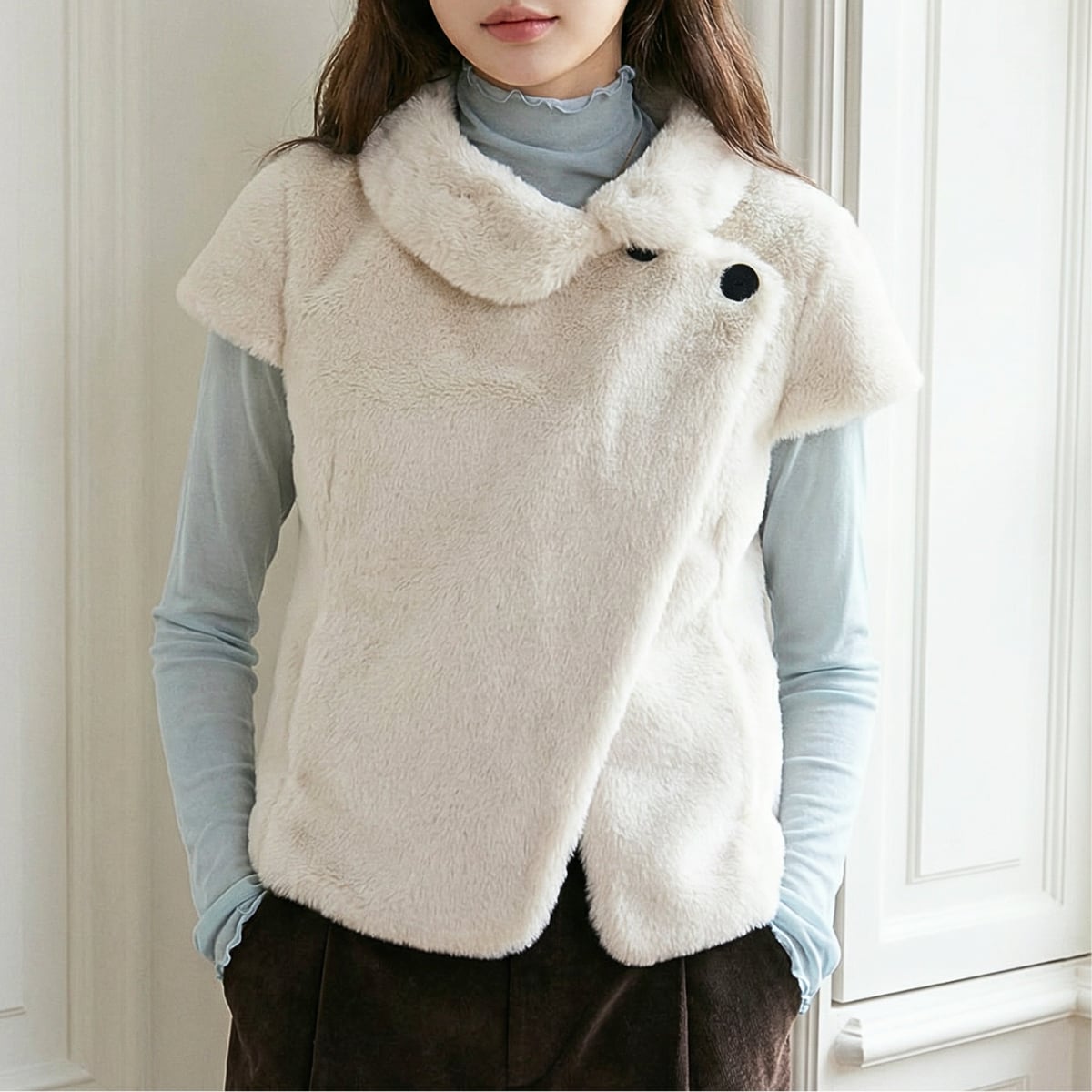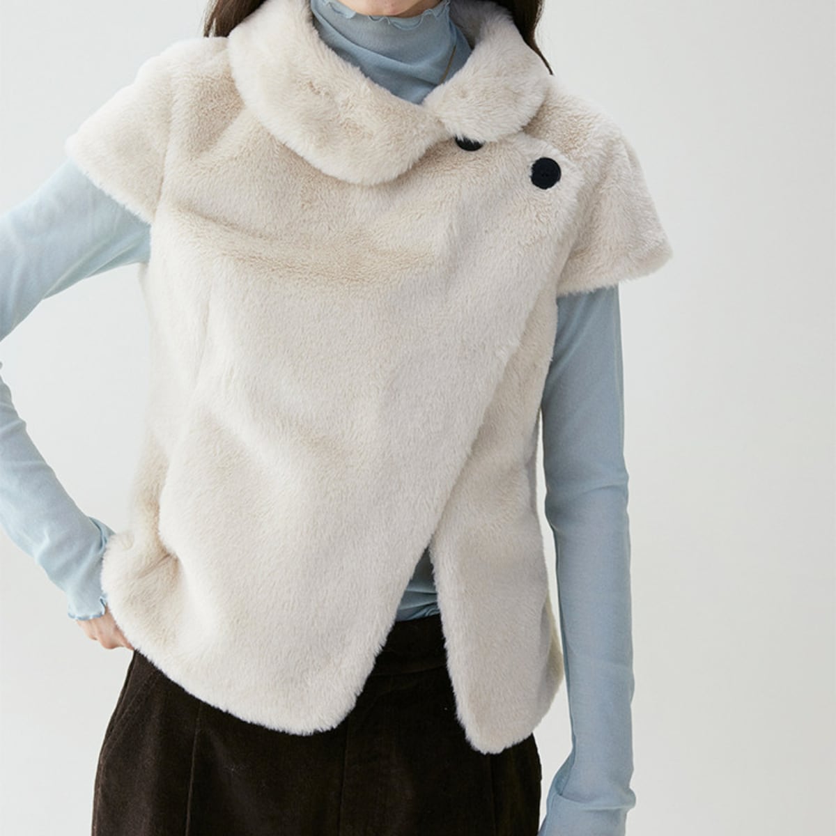 Asymmetric Button Faux Fur Doll Collar Vest ch0423