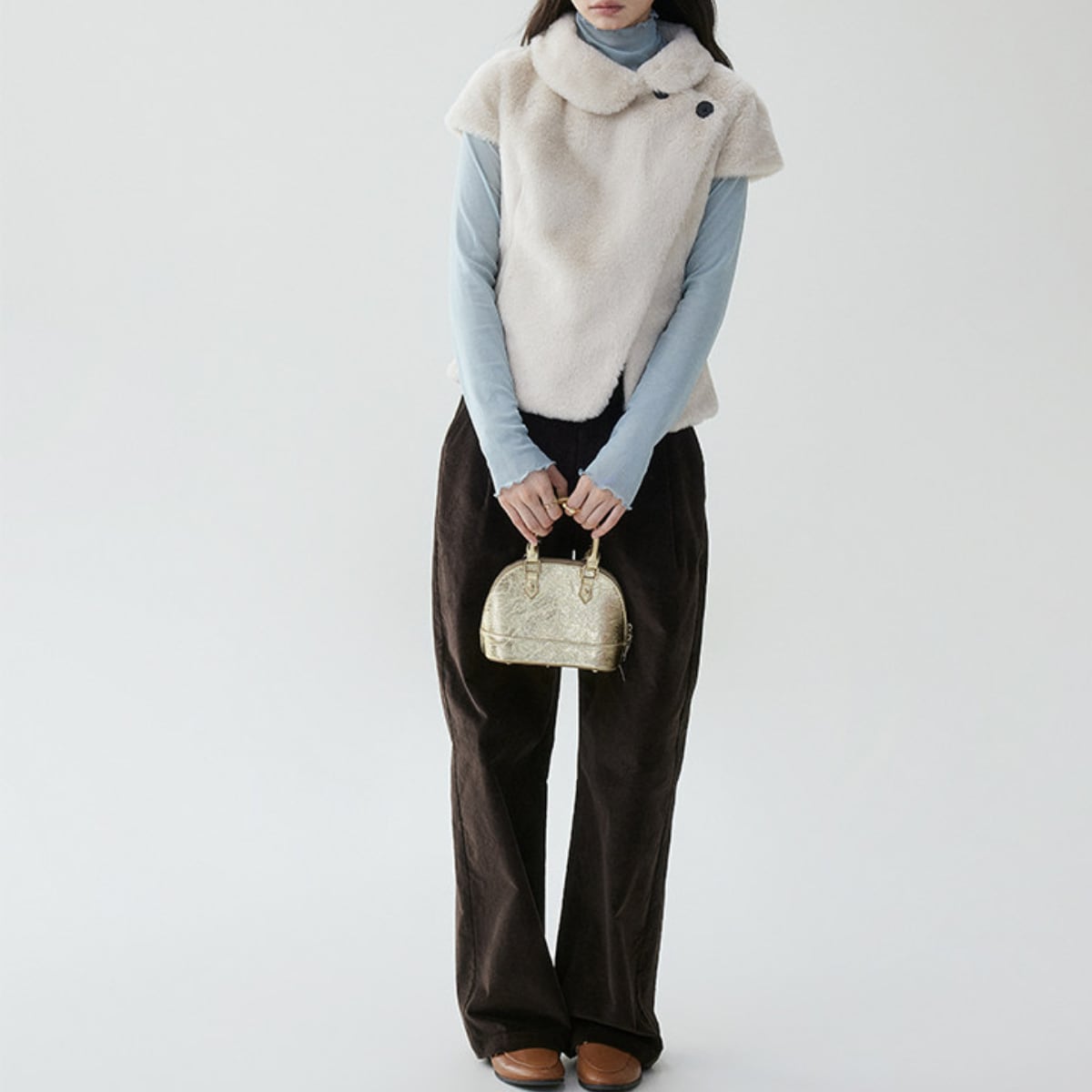 思わず触れたくなるような、密度が高く滑らかなエコファーを使用したドールカラーベストです。