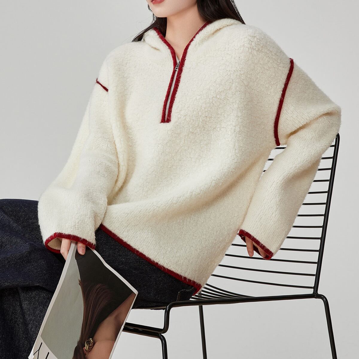 ゆったりとしたオーバーサイズのシルエットと、ボリュームのあるフードが、大人のリラックス感を演出します。