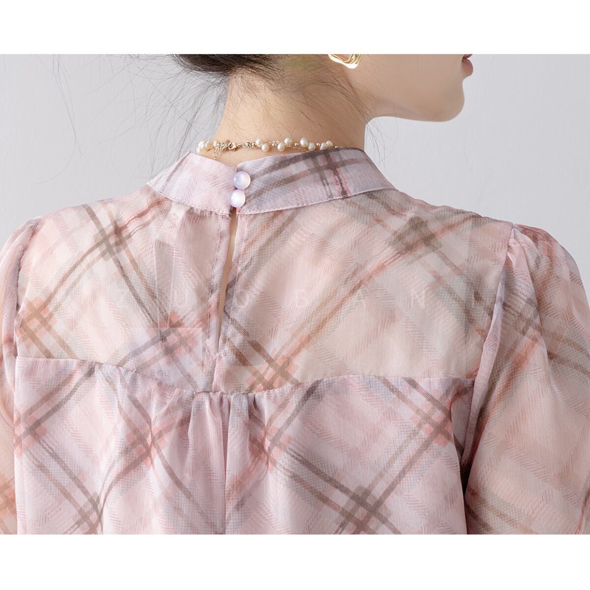 ボウタイ チェック柄 シフォン ブラウス ch559