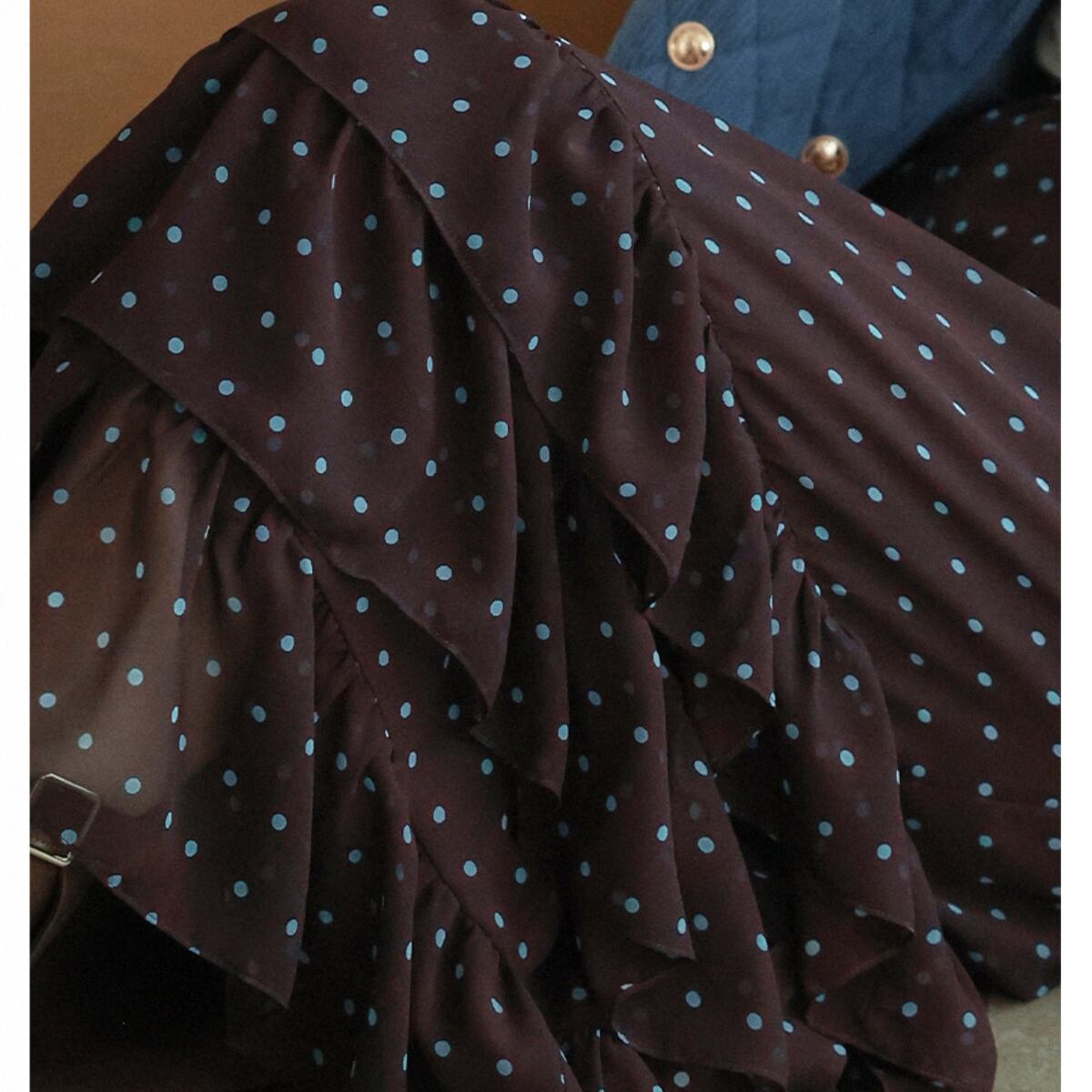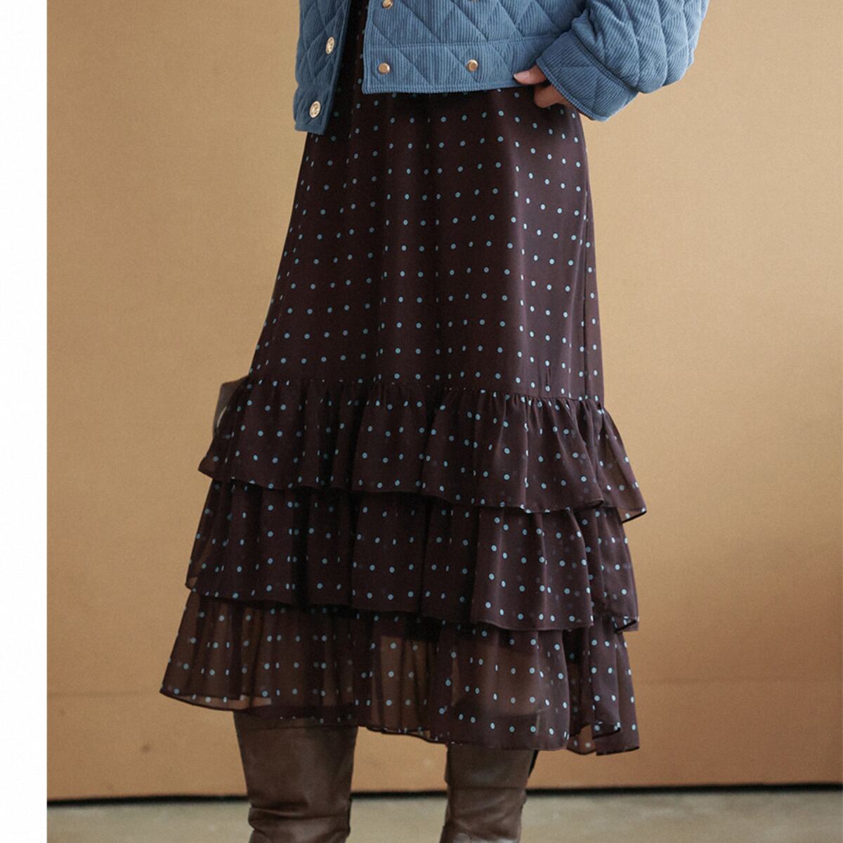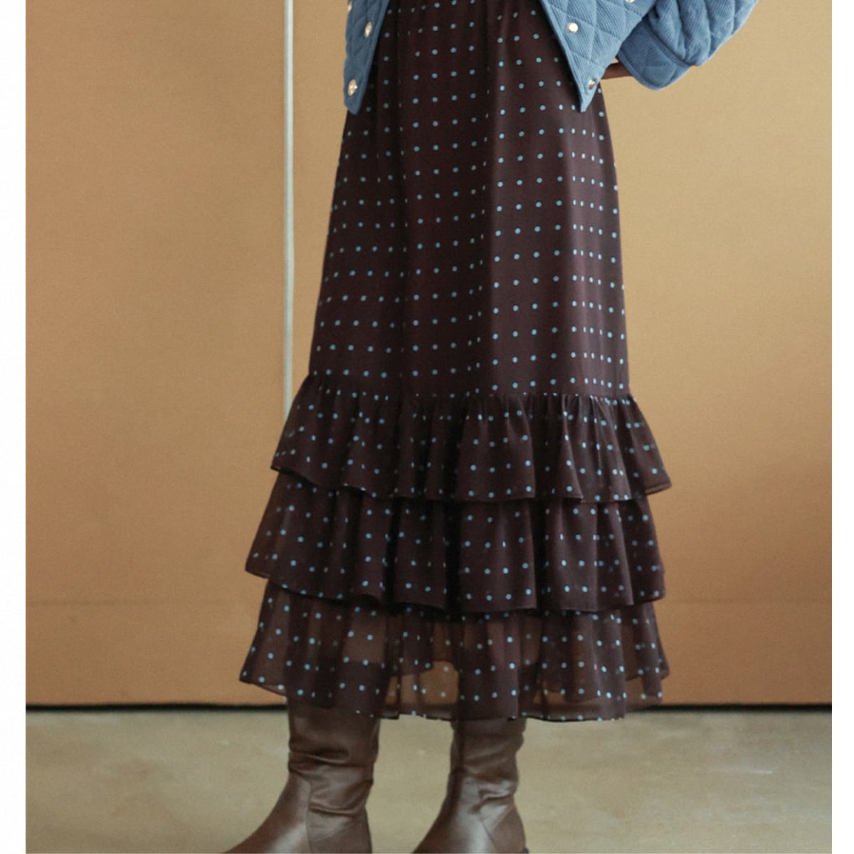 ドットシフォン・レイヤードフリルロングスカート ch516