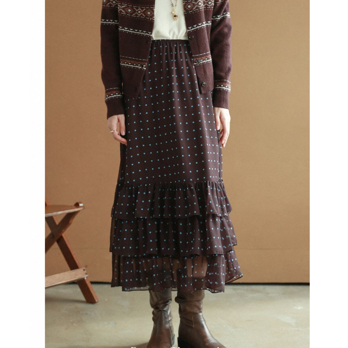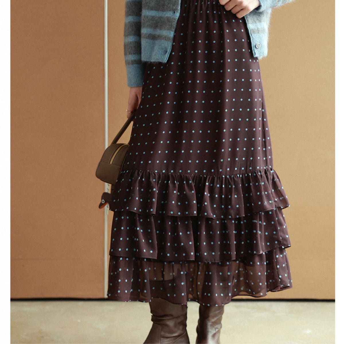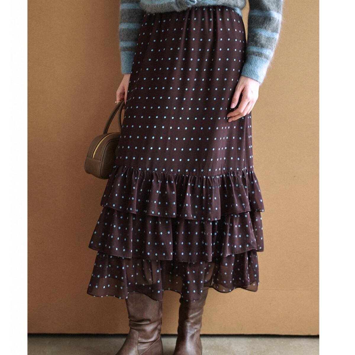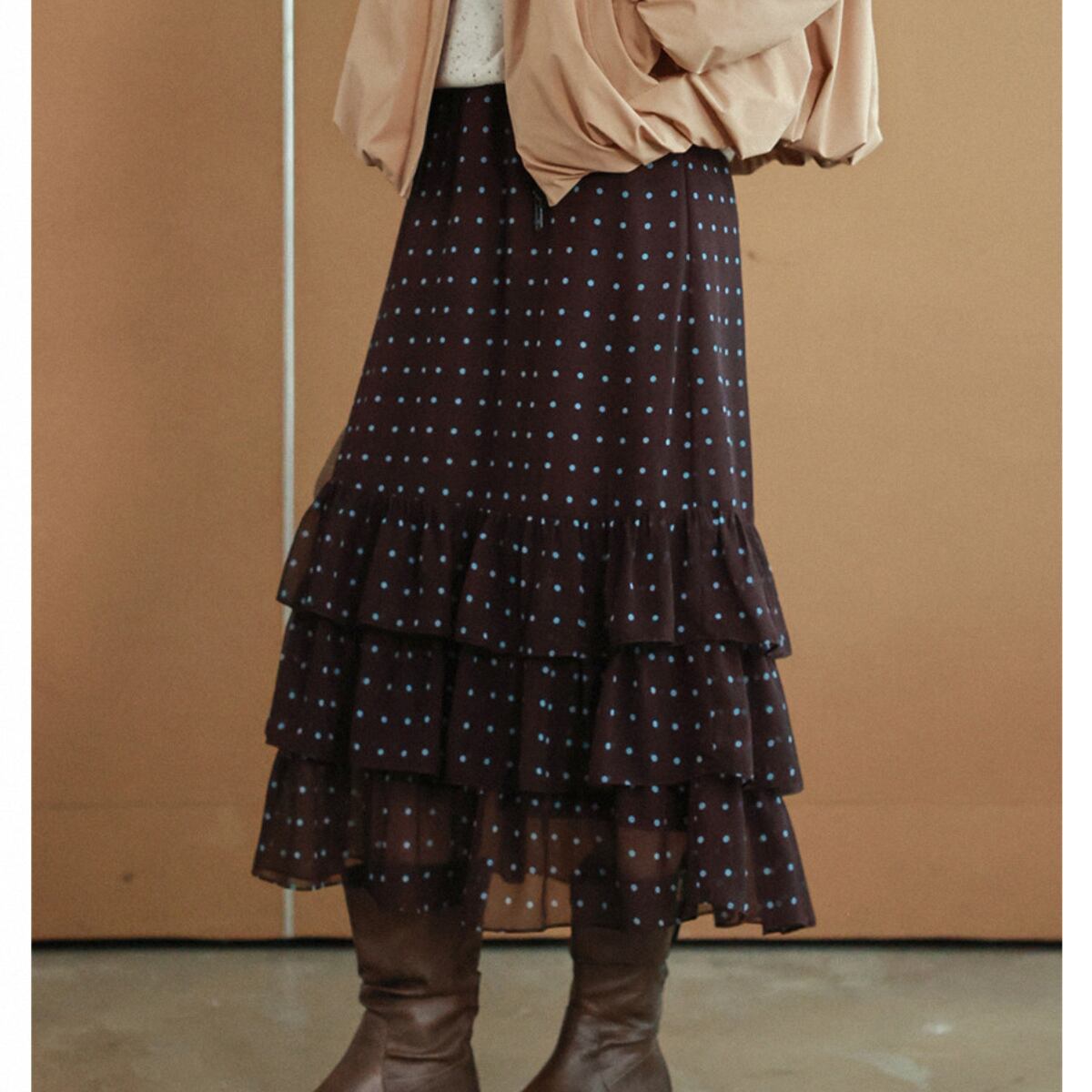 ドットシフォン・レイヤードフリルロングスカート ch516