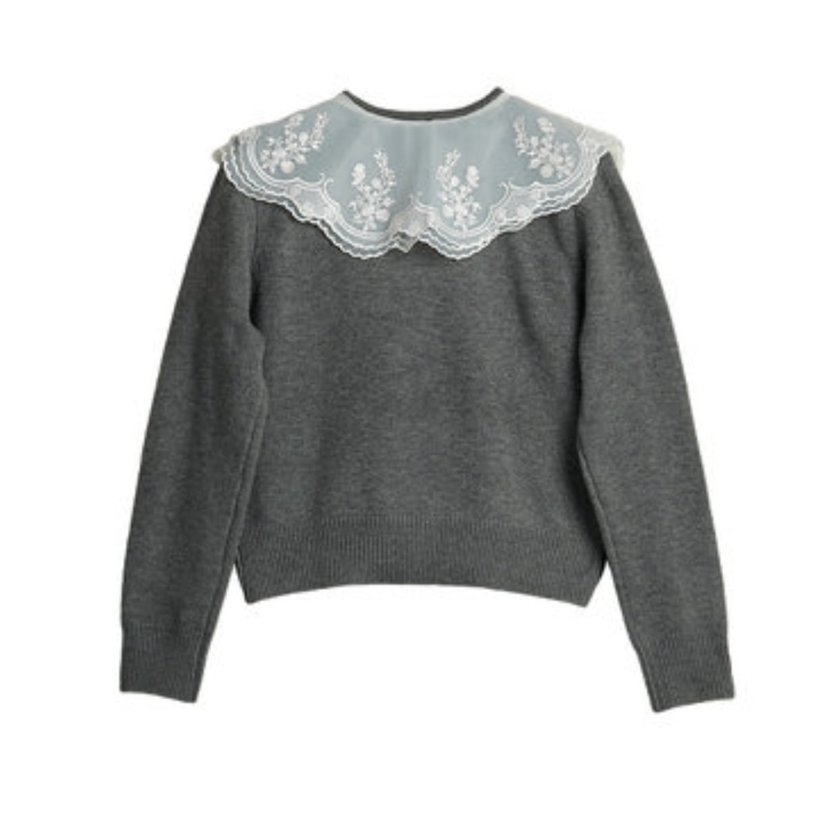 レースカラー クロップド・ニットカーディガン ch0511