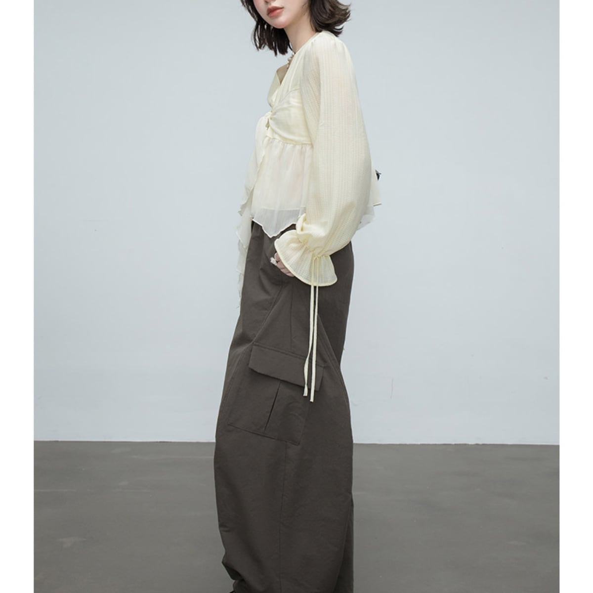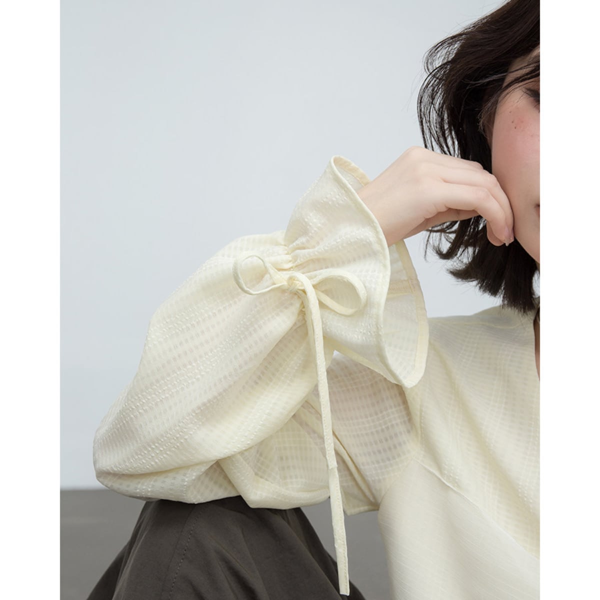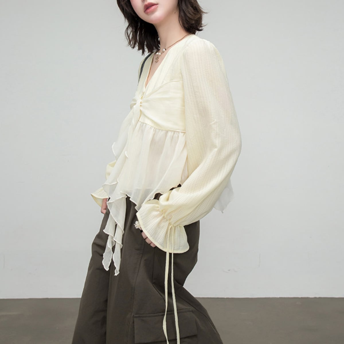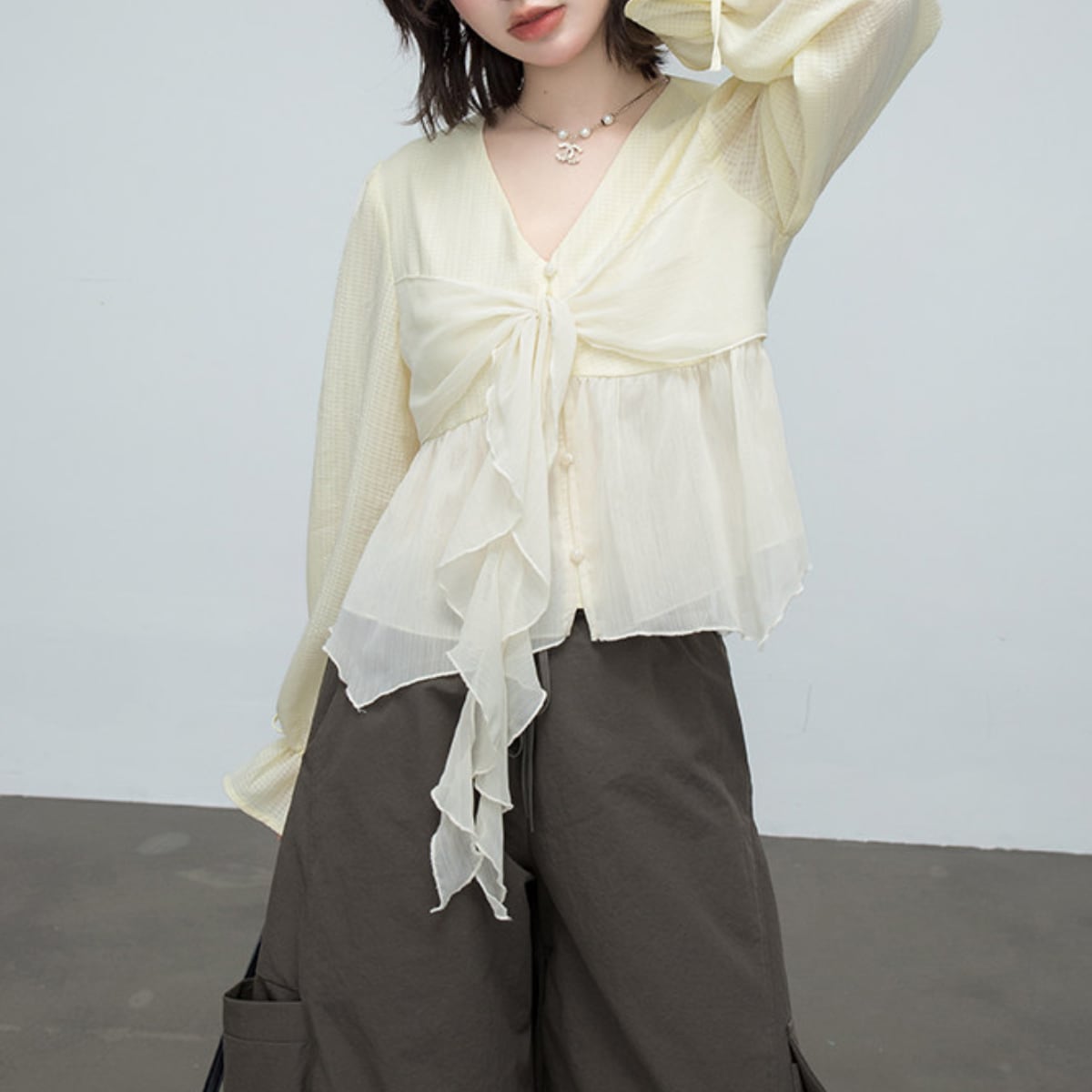 ふわりと風をまとうような、軽やかなシアー素材が魅力の主役級ブラウス。