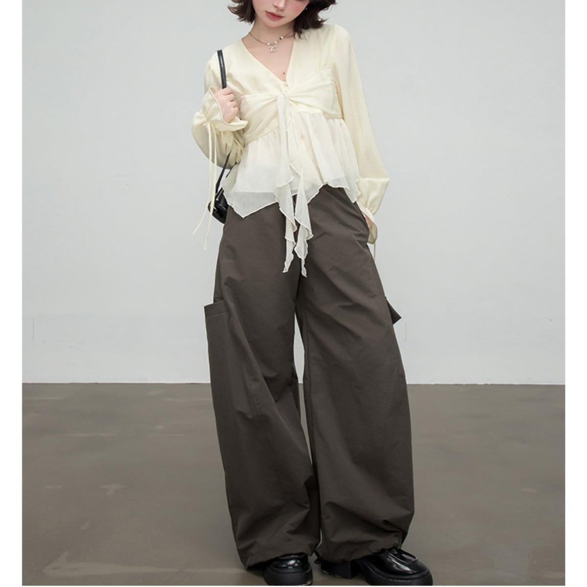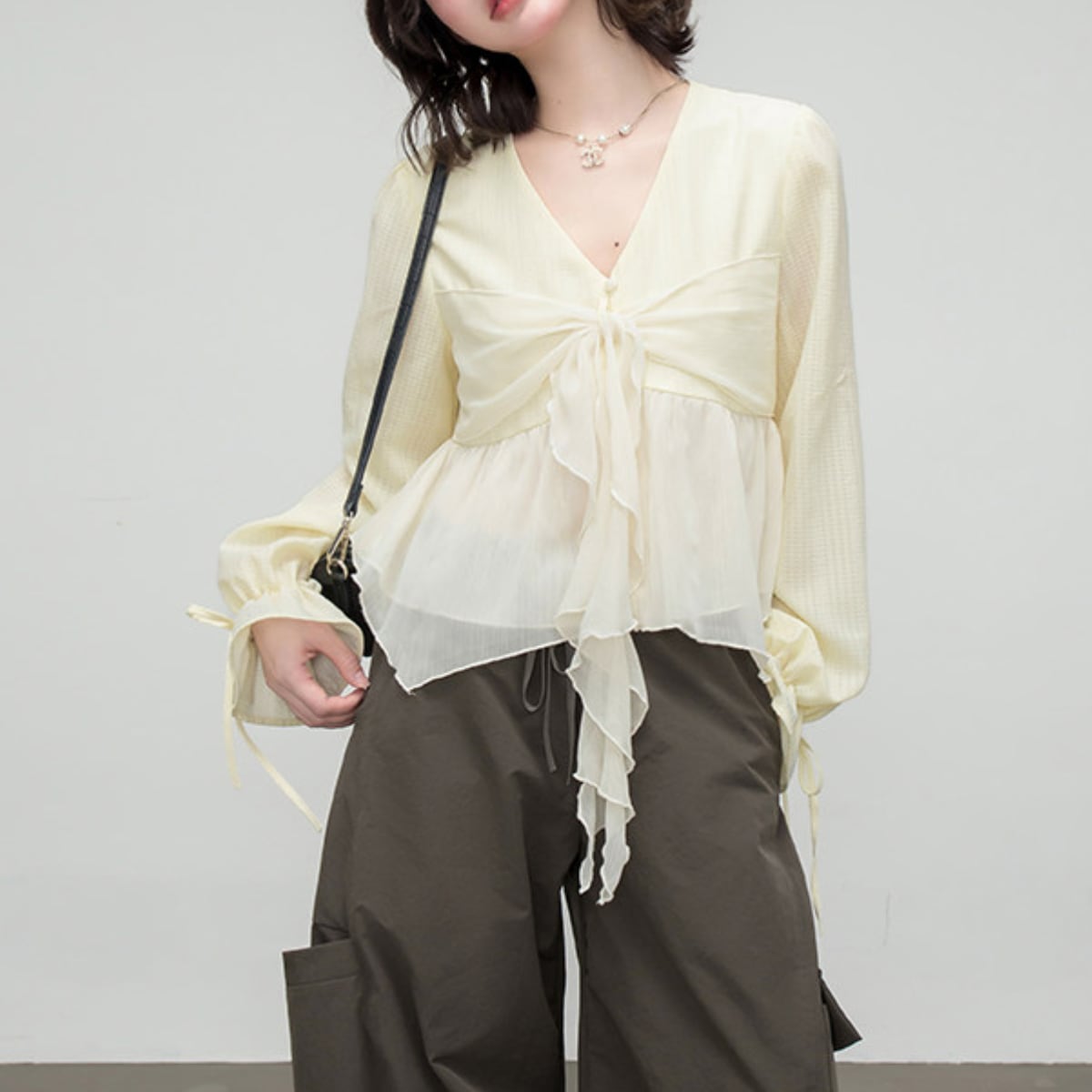 フロントタイ・エアリーシフォンペプラムブラウス ch0579