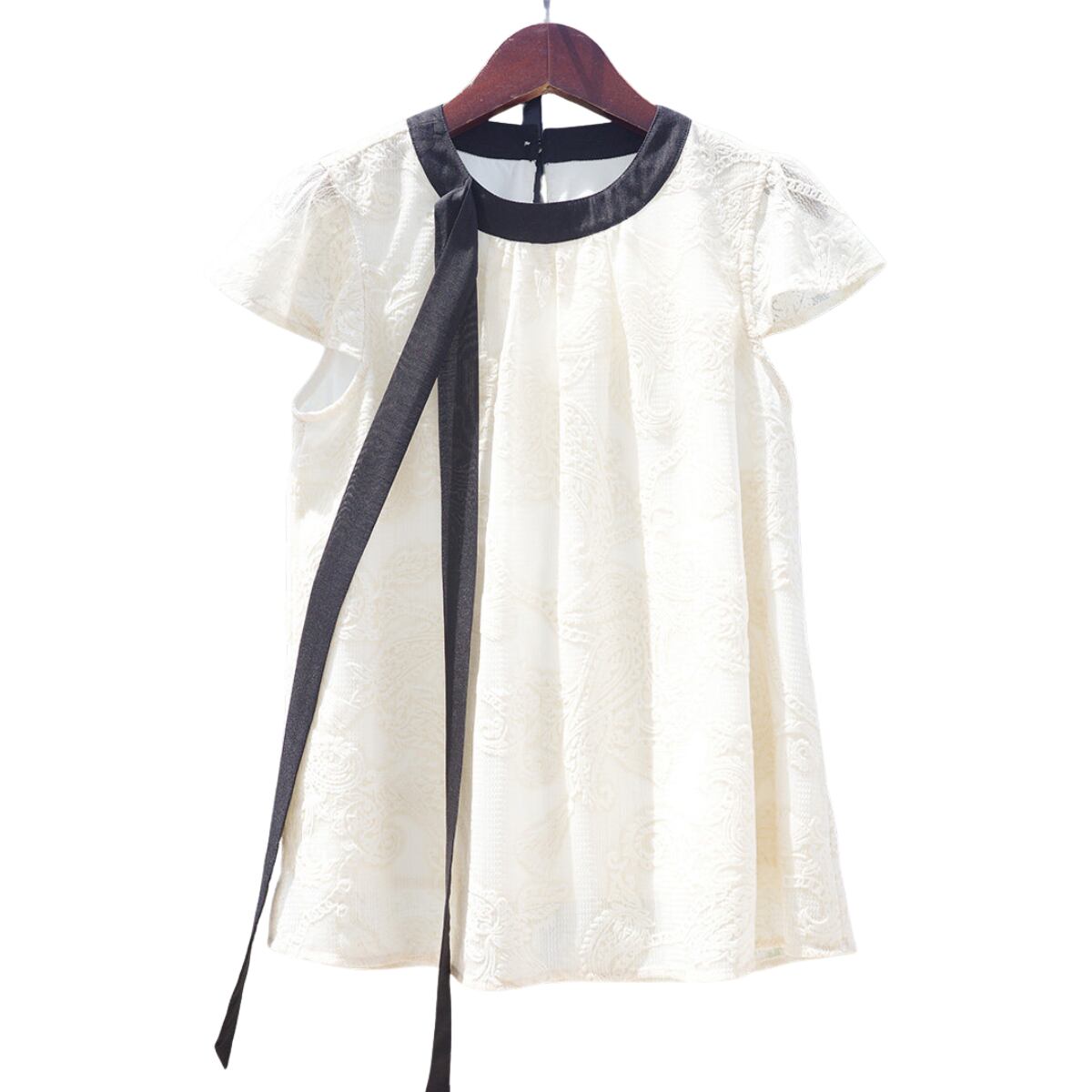 バイカラーリボン パイピングレースブラウス ch0502