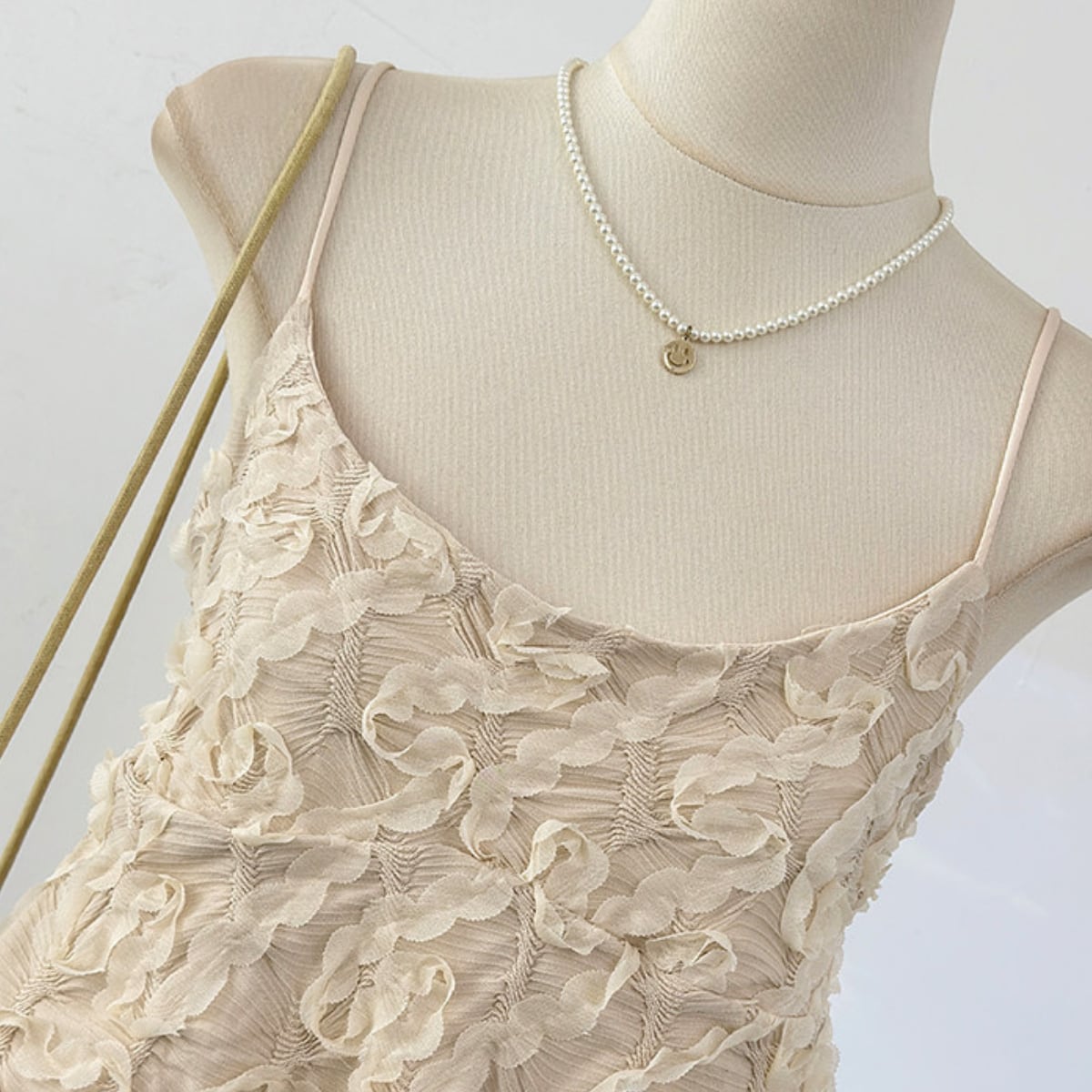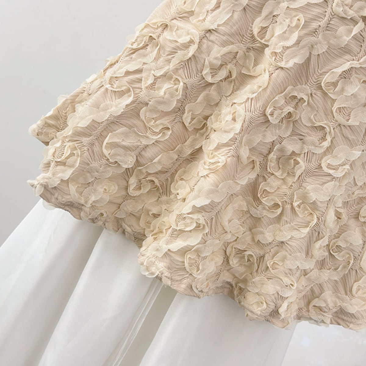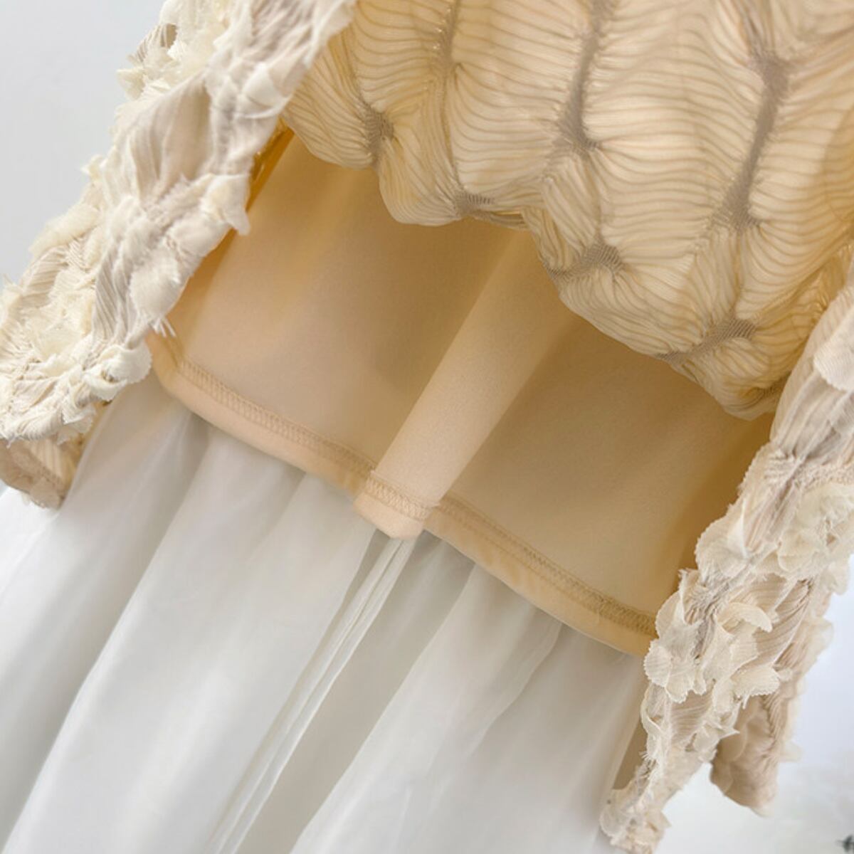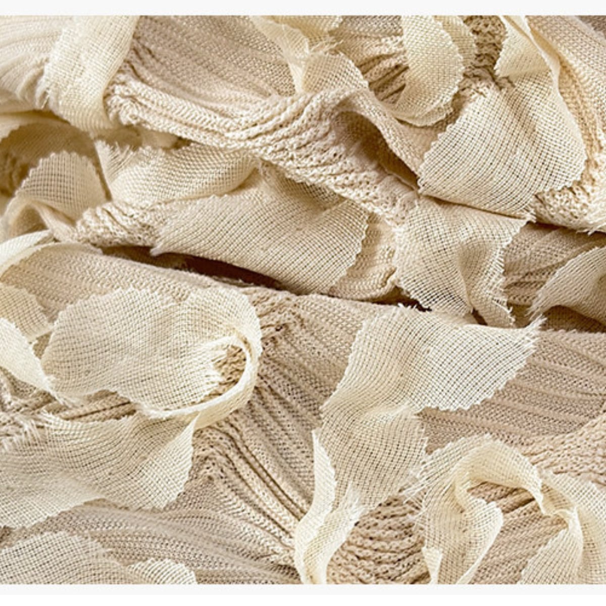 まるで花びらを敷き詰めたような、立体感のあるフリンジジャガード生地を贅沢に使用した主役級の一着です。