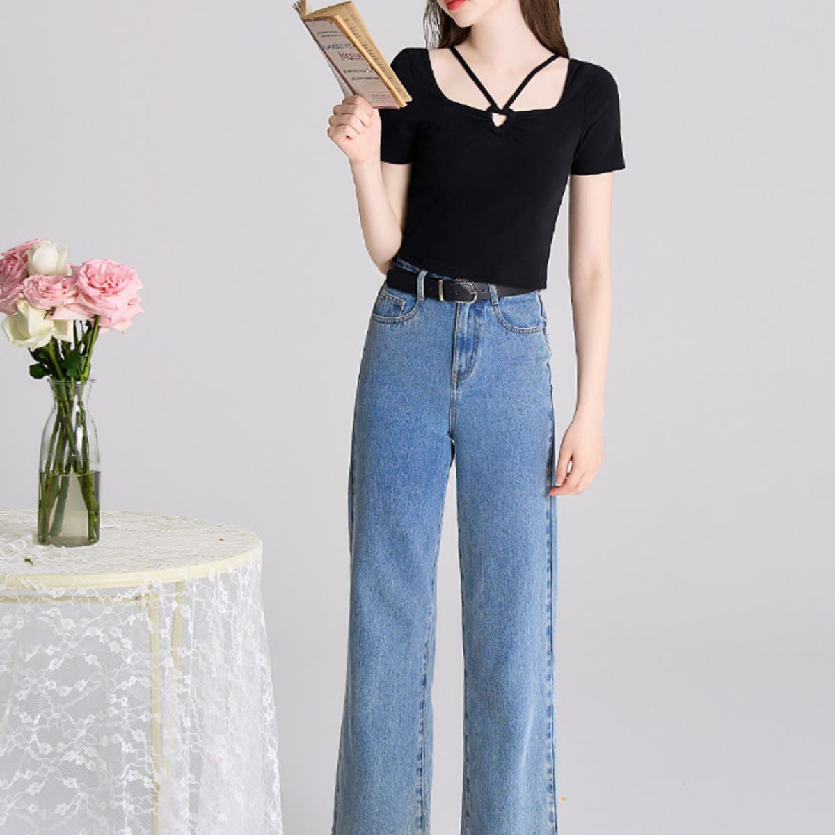 ハイウエストのデニムでカジュアルダウンするのはもちろん、タイトスカートと合わせてレディライクに仕上げるのもおすすめ。ベーシックなブラックカラーながら、ディテールで差がつく主役級のトップスです。